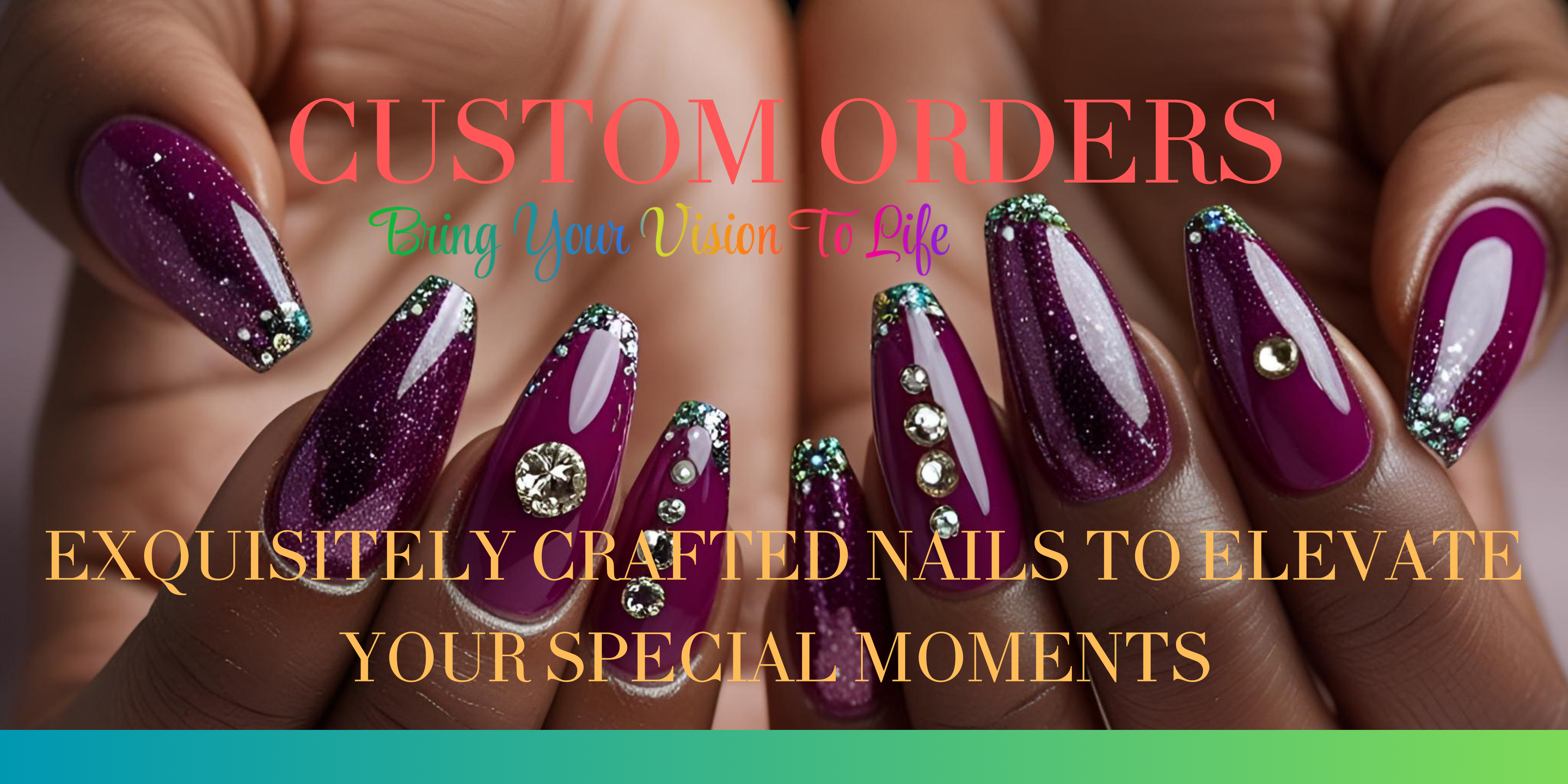 - Fill Out the Custom Request Form. Tell us about your dream nails — colors, shapes, themes, or special occasions.